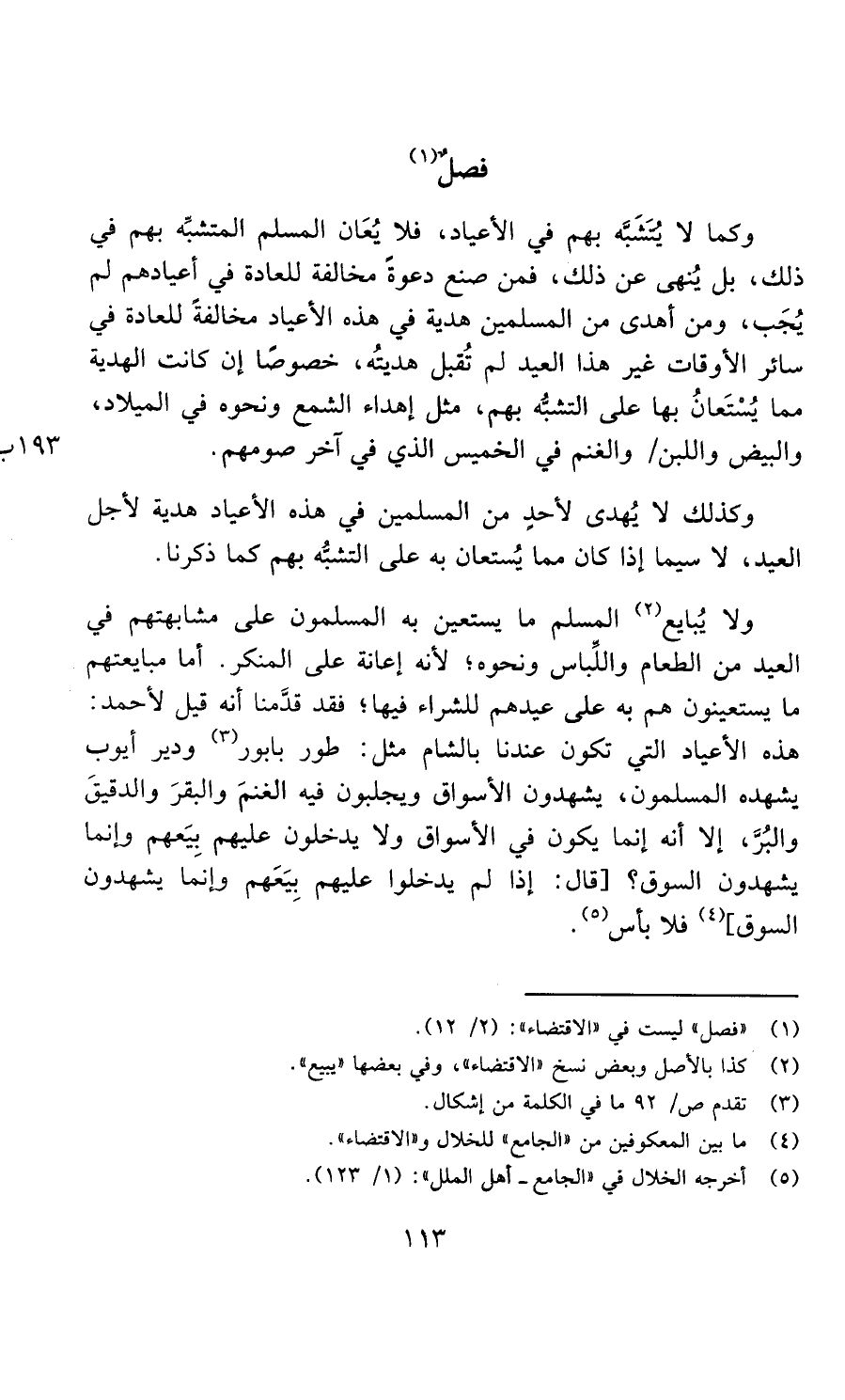 وكما لا يتشبه بهم في الأعياد، فلا يعان المسلم المتشبه بهم في ذلك، بل ينهى عن ذلك، فمن صنع دعوة مخالفة للعادة في أعيادهم لم يجب، ومن أهدى من المسلمين هدية في هذه الأعياد مخالفة للعادة في سائر الأوقات غير هذا العيد لم تقبل هديته، خصوصا إن كانت الهدية مما يستعان بها على التشبه بهم مثل إهداء الشمع ونحوه في الميلاد والبيض واللبن والغنم في الخميس الذي في آخر صومهم، وكذلك لا يهدى لأحد من المسلمين في هذه الأعياد هدية لأجل العيد، لا سيما إذا كان مما يستعان به على التشبه بهم كما ذكرنا، ولا يبيع المسلم ما يستعين به المسلمون على مشابهتهم في العيد من الطعام واللباس ونحوه؛ لأنه إعانة على المنكر، أما مبايعتهم ما يستعينون هم به على عيدهم للشراء فيها، فقد قدمنا أنه قيل لأحمد: هذه الأعياد التي تكون عندنا بالشام مثل طور يابور ودير أيوب يشهده المسلمون يشهدون الأسواق ويجلبون فيه الغنم والبقر والدقيق والبر إلا أنه إنما يكون في الأسواق ولا يدخلون عليهم بيعهم؟
