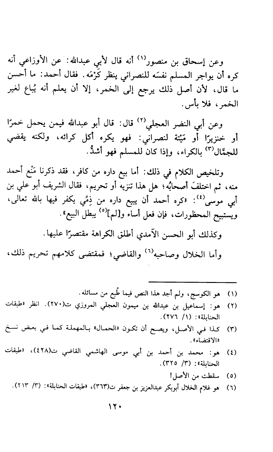 وعن إسحاق بن منصور أنه قال لأبي عبد الله عن الأوزاعي أنه كره أن يؤاجر المسلم نفسه للنصراني لنظارة كرمه، فقال أحمد: ما أحسن ما قال؛ لأن أصل ذلك يرجع إلى الخمر إلا أن يعلم أنه يباع لغير الخمر، فلا بأس.