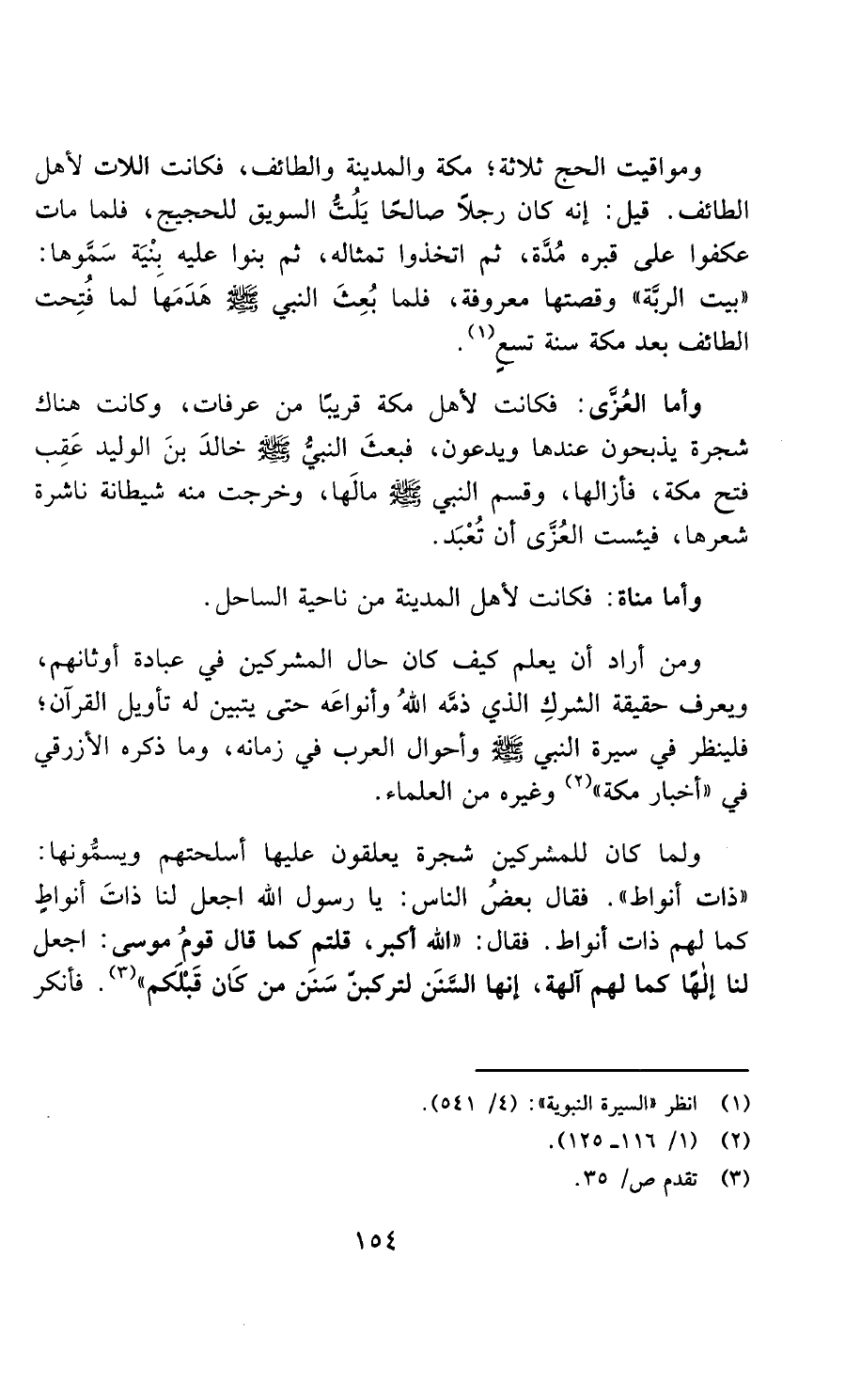ومن أراد أن يعلم كيف كان حال المشركين في عبادة أوثانهم، ويعرف حقيقة الشرك الذي ذمه الله وأنواعه حتى يتبين له تأويل القرآن، فلينظر في سيرة النبي صلى الله عليه وسلم وأحوال العرب في زمانه، وما ذكره الأزرقي في "أخبار مكة" وغيره من العلماء.