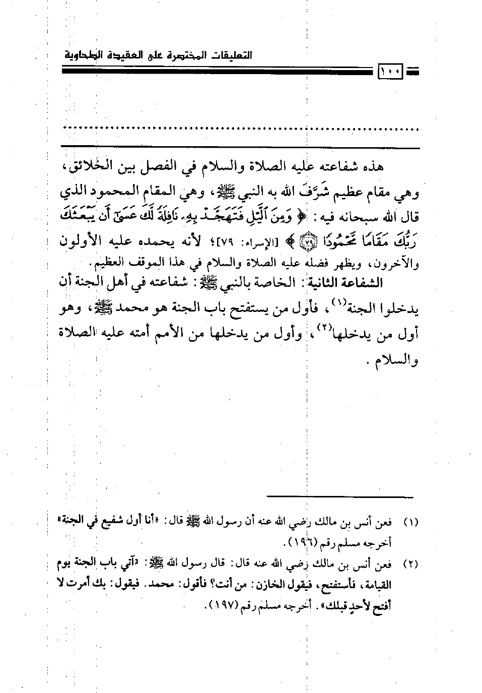 (¬1) فعن أنس بن مالك رضي الله عنه أن رسول الله صلى الله عليه وسلم قال: "أنا أول شفيع في الجنة" أخرجه مسلم رقم (196) .