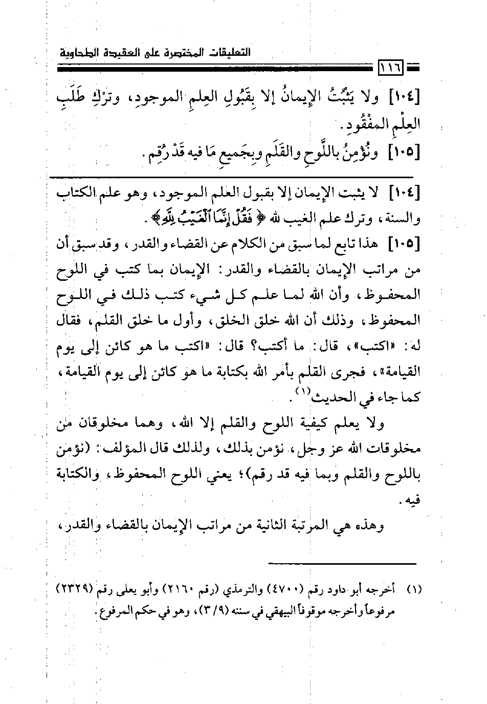 ونؤمن باللوح والقلم وبجميع ما فيه قد رُقم: