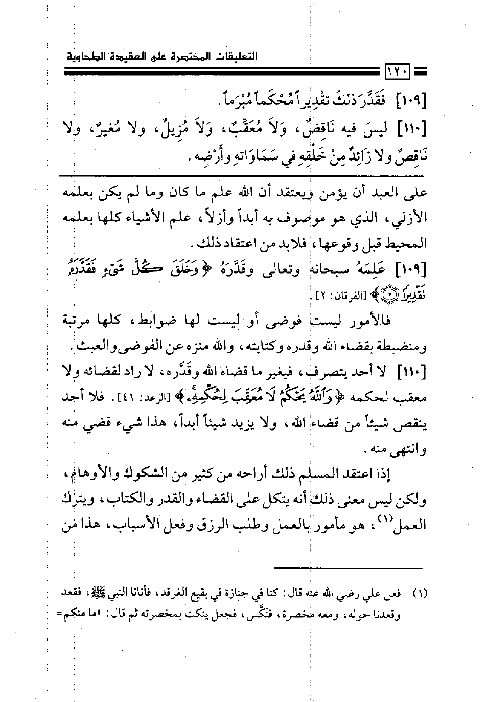 على العبد أن يؤمن ويعتقد أن الله علم ما كان وما لم يكن بعلمه الأزلي، الذي هو موصوف به أبداً وأزلاً، علم الأشياء كلها بعلمه المحيط قبل وقوعها، فلابد من اعتقاد ذلك.