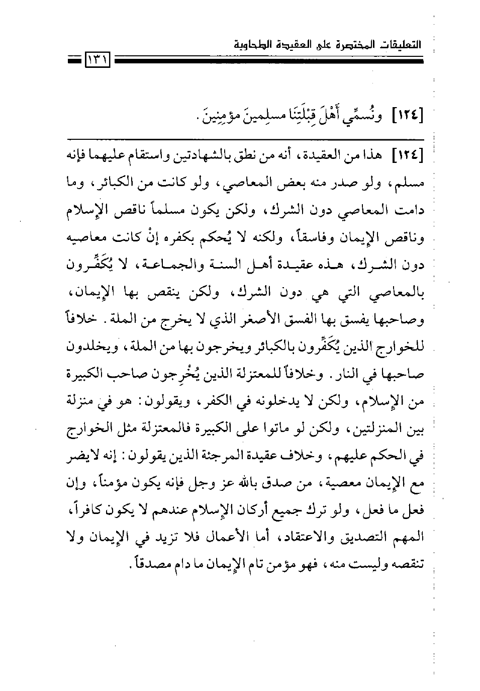 ونسمّي أهل قبلتنا مسلمين مؤمنين: