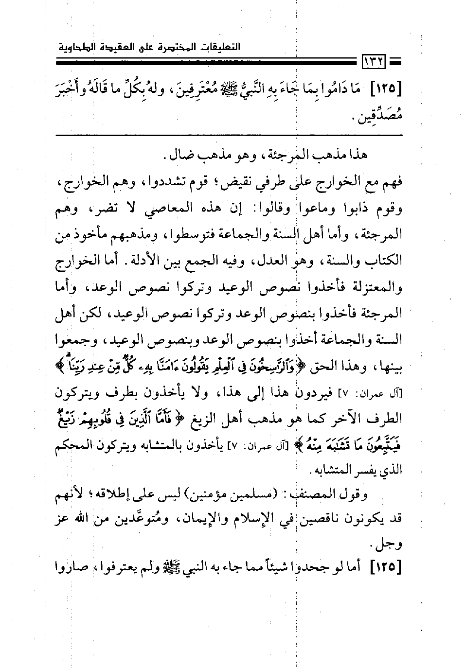 فهم مع الخوارج على طرفي نقيض؛ قوم تشددوا، وهم الخوارج، وقوم ذابوا وماعوا وقالوا: إن هذه المعاصي لا تضر، وهم المرجئة، وأما أهل السنة والجماعة فتوسطوا، ومذهبهم مأخوذ من الكتاب والسنة، وهو العدل، وفيه الجمع بين الأدلة. أما الخوارج والمعتزلة فأخذوا نصوص الوعيد وتركوا نصوص الوعد، وأما المرجئة فأخذوا بنصوص الوعد وتركوا نصوص الوعيد، لكن أهل السنة والجماعة أخذوا بنصوص الوعد وبنصوص الوعيد، وجمعوا بينها، وهذا الحق (والراسخون في العلم يقولون آمنا به كل من عند ربنا) [آل عمران: 7] فيردون هذا إلى هذا، ولا يأخذون بطرف ويتركون الطرف الآخر كما هو مذهب أهل الزيغ (فأما الذين في قلوبهم زيغ فيتبعون ما تشابه منه) [آل عمران: 7] يأخذون بالمتشابه ويتركون المحكم الذي يفسر المتشابه.