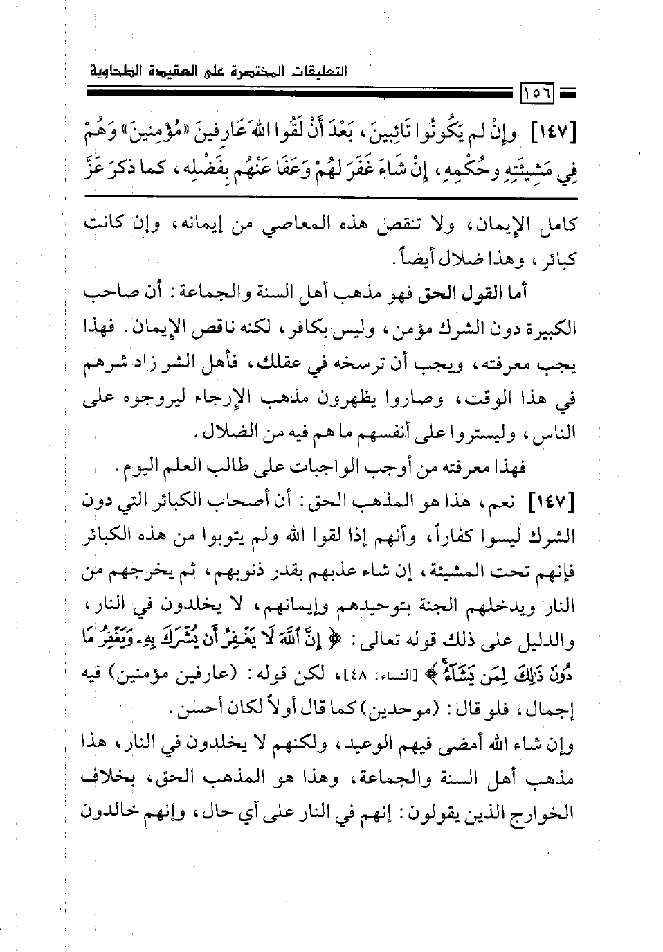 وإن شاء الله أمضى فيهم الوعيد، ولكنهم لا يخلدون في النار، هذا مذهب أهل السنة والجماعة، وهذا هو المذهب الحق، بخلاف الخوارج الذين يقولون: إنهم في النار على أي حال، وإنهم خالدون