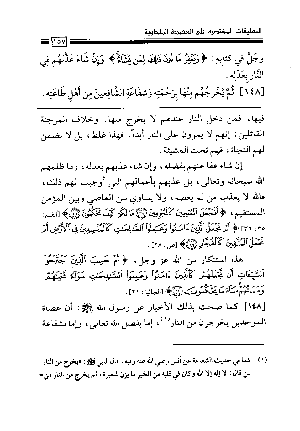(¬1) كما في حديث الشفاعة عن أنس رضي الله عنه وفيه، قال النبي صلى الله عليه وسلم: "يخرج من النار من قال: لا إله إلا الله وكان في قلبه من الخير ما يزن شعيرة، ثم يخرج من النار من قال: لا إله إلا الله وكان في قلبه من الخير ما يزن برة، ثم يخرج من النار من قال: لا إله إلا الله، وكان في قلبه ما يزن من الخير ذرة" أخرجه البخاري (رقم 7410) ومسلم (رقم193) .