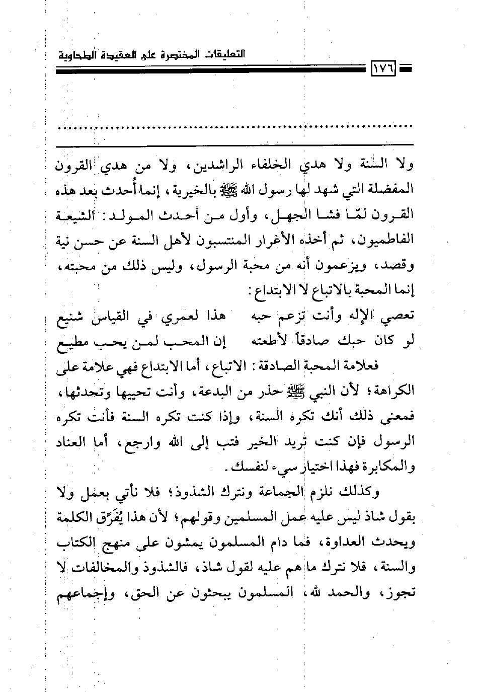 وكذلك نلزم الجماعة ونترك الشذوذ؛ فلا نأتي بعمل ولا بقول شاذ ليس عليه عمل المسلمين وقولهم؛ لأن هذا يُفرّق الكلمة ويحدث العداوة، فما دام المسلمون يمشون على منهج الكتاب والسنة، فلا نترك ما هم عليه لقول شاذ، فالشذوذ والمخالفات لا تجوز، والحمد لله، المسلمون يبحثون عن الحق، وإجماعهم