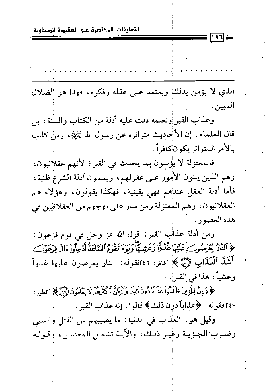 فالمعتزلة لا يؤمنون بما يحدث في القبر؛ لأنهم عقلانيون، وهم الذين يبنون الأمور على عقولهم، ويسمون أدلة الشرع ظنية، فأما أدلة العقل عندهم فهي يقينية، فهكذا يقولون، وهؤلاء هم العقلانيون، وهم المعتزلة ومن سار على نهجهم من العقلانيين في هذه العصور.