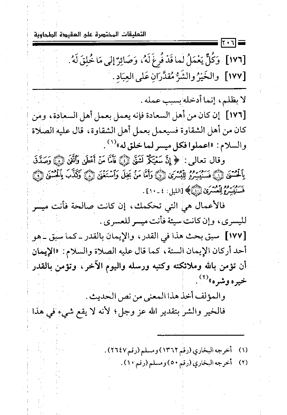 سبق بحث هذا في القدر، والإيمان بالقدر -كما سبق- هو أحد أركان الإيمان الستة، كما قال عليه الصلاة والسلام: "الإيمان أن تؤمن بالله وملائكته وكتبه ورسله واليوم الآخر، وتؤمن بالقدر خيره وشره" (¬2) .