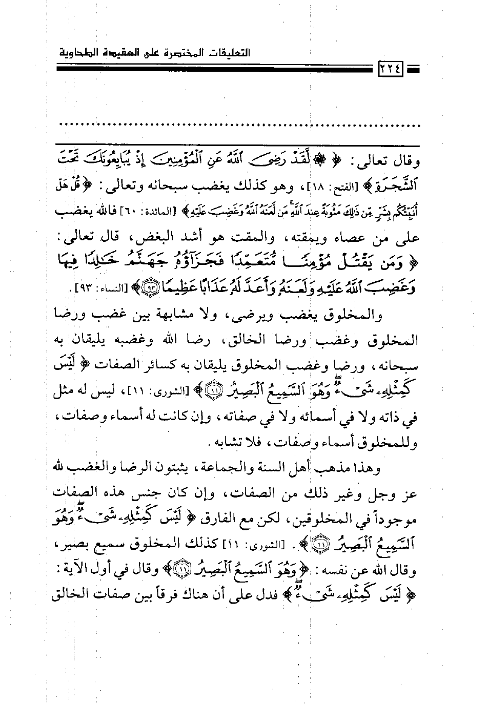 وهذا مذهب أهل السنة ولجماعة، يثبتون الرضا والغضب لله عز وجل وغير ذلك من الصفات، وإن كان جنس هذه الصفات موجوداً في المخلوقين، لكن مع الفارق (ليس كمثله شيء وهو السميع البصير) [الشورى: 11] كذلك المخلوق سميع بصير، وقال الله عن نفسه: (وهو السميع البصير) وقال في أول الآية: (ليس كمثله شيء) فدل على أن هناك فرقاً بين صفات الخالق