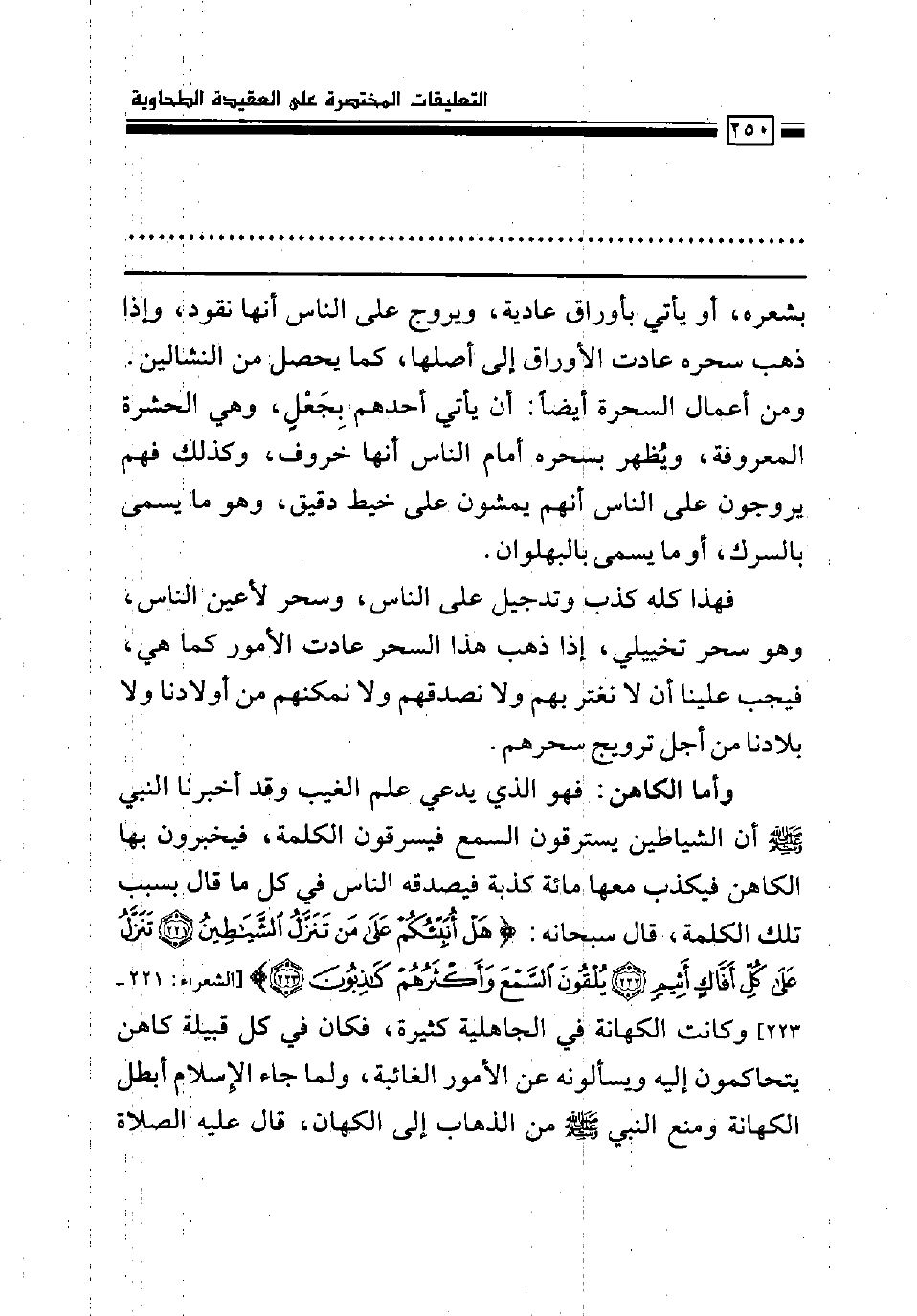 وأما الكاهن: فهو الذي يدعي علم الغيب وقد أخبرنا النبي صلى الله عليه وسلم أن الشياطين يسترقون السمع فيسرقون الكلمة، فيخبرون بها الكاهن فيكذب معها مائة كذبة فيصدقه الناس في كل ما قال بسبب تلك الكلمة، قال سبحانه: (هل أنبئكم على من تنزل الشياطين* تنزل على كل أفاك أثيم* يلقون السمع وأكثرهم كاذبون) [الشعراء: 221، 223] وكانت الكهانة في الجاهلية كثيرة، فكان في كل قبيلة كاهن يتحاكمون إليه ويسألونه عن الأمور الغائبة، ولما جاء الإسلام أبطل الكهانة ومنع النبي صلى الله عليه وسلم من الذهاب إلى الكهان، قال عليه الصلاة