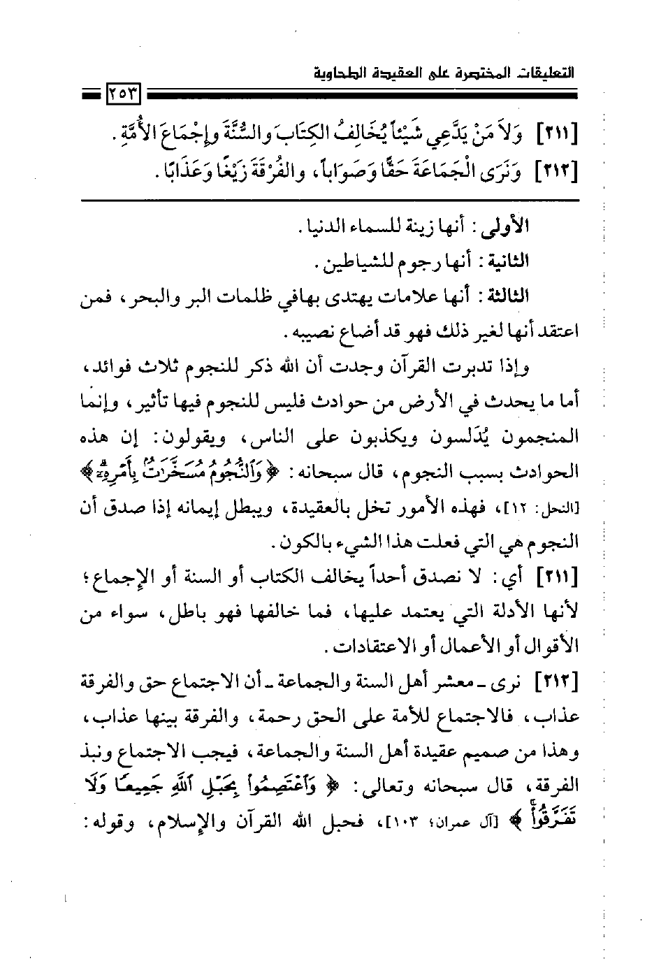 وإذا تدبرت القرآن وجدت أن الله ذكر للنجوم ثلاث فوائد، أما ما يحدث في الأرض من حوادث فليس للنجوم فيها تأثير، وإنما المنجمون يُدَلسون ويكذبون على الناس، ويقولون: إن هذه الحوادث بسبب النجوم، قال سبحانه: (والنجوم مسخرات بأمره) [النحل: 12] ، فهذه الأمور تخل بالعقيدة، ويبطل إيمانه إذا صدق أن النجوم هي التي فعلت هذا الشيء بالكون.