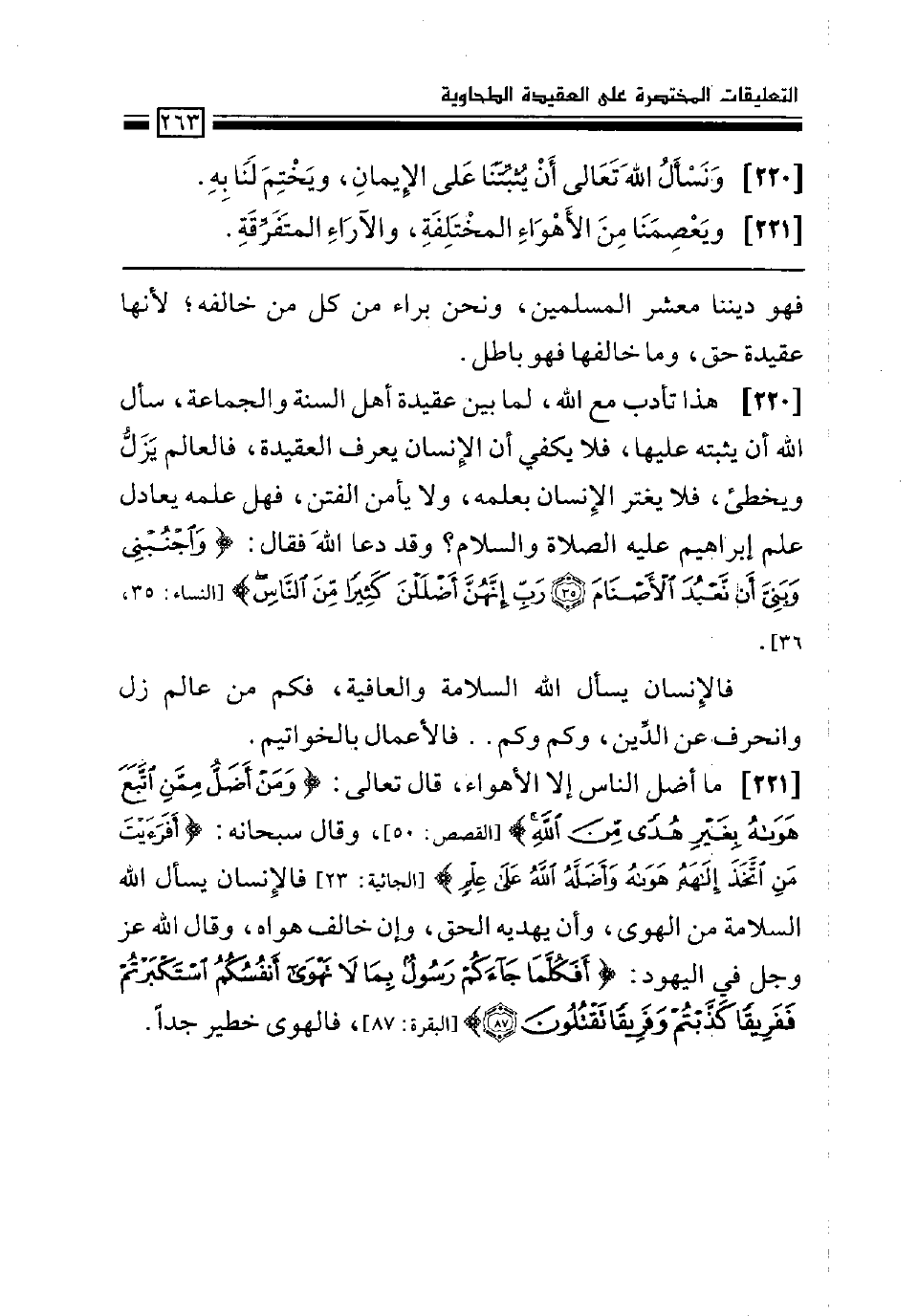 هذا تأدب مع الله، لما بين عقيدة أهل السنة والجماعة، سأل الله أن يثبته عليها، فلا يكفي أن الإنسان يعرف العقيدة، فالعالم يَزَلُّ ويخطئ، فلا يغتر الإنسان بعلمه، ولا يأمن الفتن، فهل علمه يعادل علم إبراهيم عليه الصلاة والسلام؟ وقد دعاء الله فقال: (واجنبني وبني أن نعبد الأصنام* رب أنهن أضللن كثيراً من الناس) [النساء: 35، 36] .