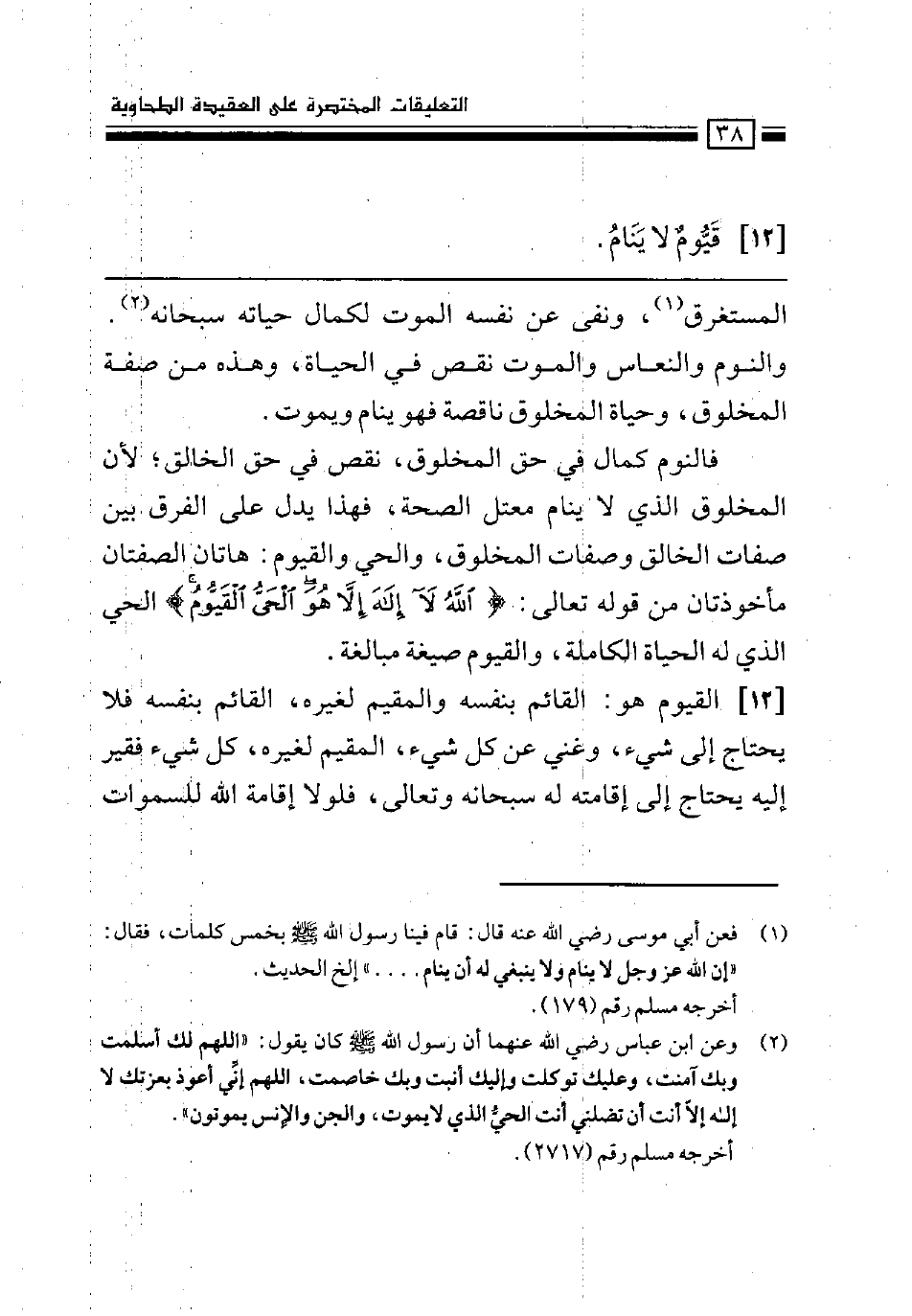 (¬1) فعن أبي موسى رضي الله عنه قال: قام فينا رسول الله صلى الله عليه وسلم بخمس كلمات، فقال: "إن الله عز وجل لا ينام ولا ينبغي له أن ينام….." إلخ الحديث.