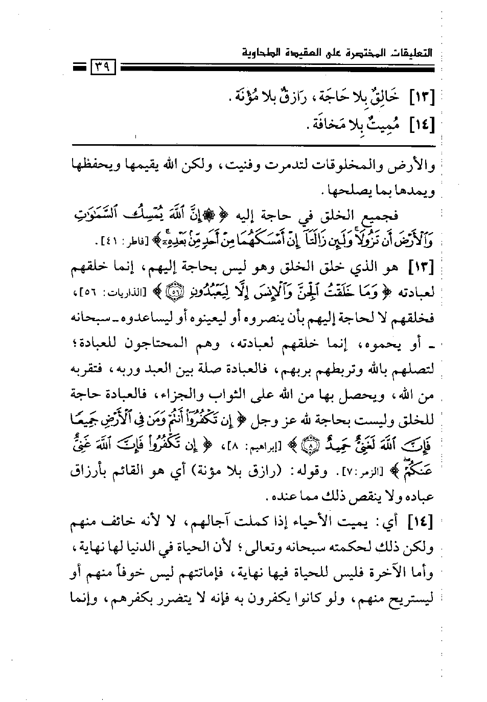 هو الذي خلق الخلق وهو ليس بحاجة إليهم، إنما خلقهم لعبادته (وما خلقت الجن والإنس إلا ليعبدون) [الذاريات: 56] ، فخلقهم لا لحاجة إليهم بأن ينصروه أو ليعينوه أو ليساعدوه -سبحانه- أو يحموه، إنما خلقهم لعبادته، وهم المحتاجون للعبادة؛ لتصلهم بالله وتربطهم بربهم، فالعبادة صلة بين العبد وربه، فتقربه من الله، ويحصل بها من الله على الثواب والجزاء، فالعبادة حاجة للخلق وليست بحاجة لله عز وجل (إن تكفروا أنتم ومن في الأرض جميعاً فإن الله لغني حميد) [إبراهيم: 8] (إن تكفروا فإن الله غني عنكم) [الزمر: 7] . وقوله: (رازق بلا مؤنة) أي هو القائم بأرزاق عباده ولا ينقص ذلك مما عنده.