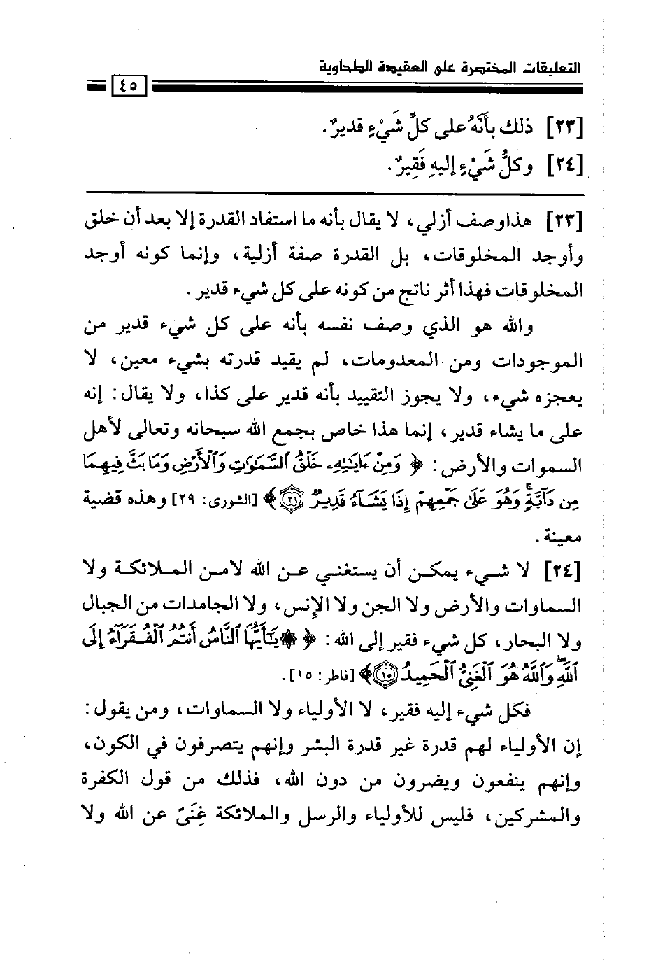 هذا وصف أزلي، لا يقال بأنه ما استفاد القدرة إلا بعد أن خلق وأوجد المخلوقات، بل القدرة صفة أزلية، وإنما كونه أوجد المخلوقات فهذا أثر ناتج من كونه على كل شيء قدير.