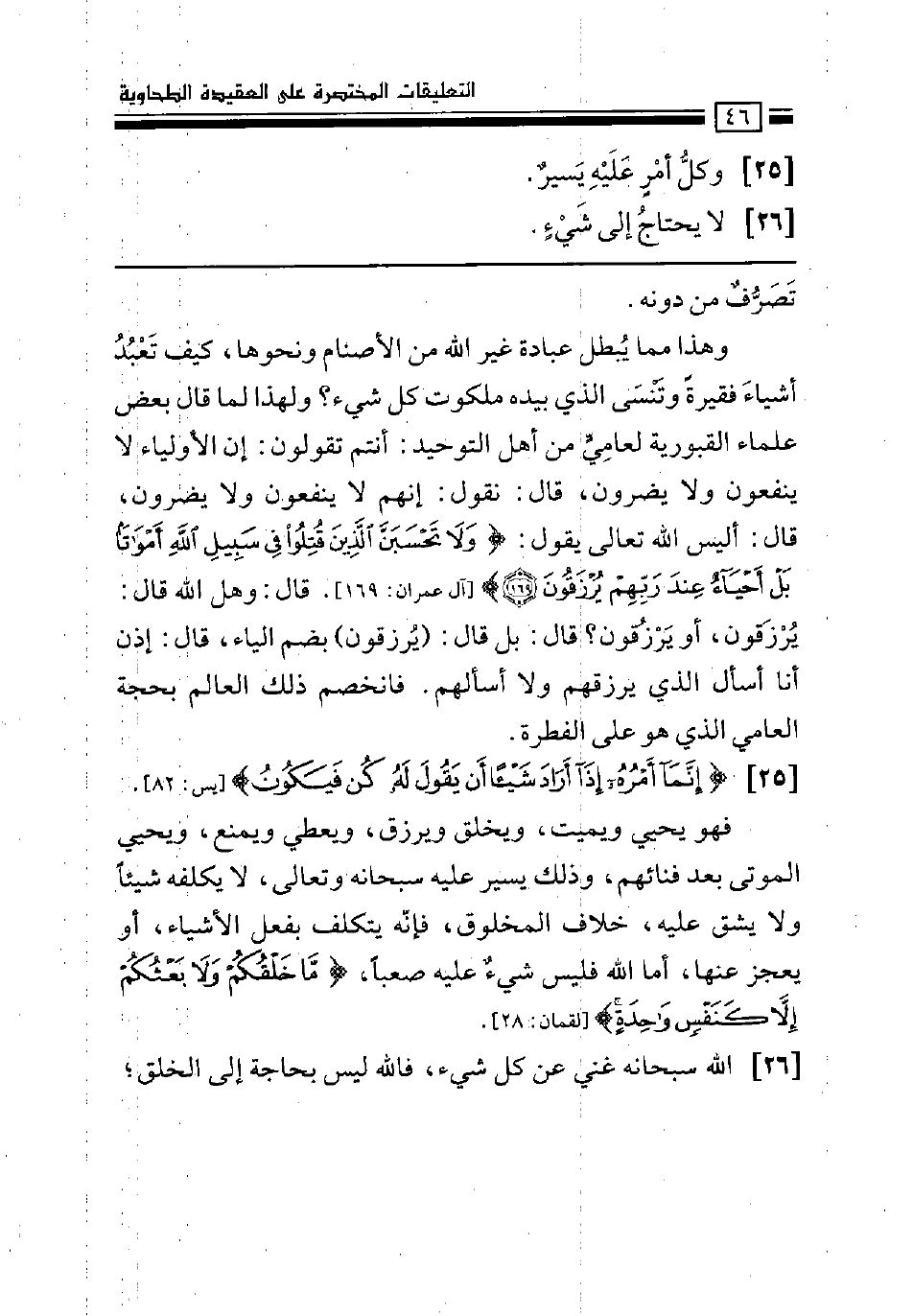 وهذا مما يبطل عبادة غير الله من الأصنام ونحوها، كيف تعبد أشياء فقيرة وتنسى الذي بيده ملكوت كل شيء؟ ولهذا لما قال بعض علماء القبورية لعامي من أهل التوحيد: أنتم تقولون: إن الأولياء لا ينفعون ولا يضرون، قال: نقول: إنهم لا ينفعون ولا يضرون، قال: أليس الله تعالى يقول: (ولا تحسبن الذين قتلوا في سبيل الله أمواتاً بل أحياء عند ربهم يرزقون) [آل عمران: 169] . قال: وهل الله قال: يُرزقون، أو يَرزقون؟ قال: بل قال: (يُرزقون) بضم الياء، قال: إذن أنا أسأل الذي يرزقهم ولا أسألهم. فانخصم ذلك العالم بحجة العامي الذي هو على الفطرة.