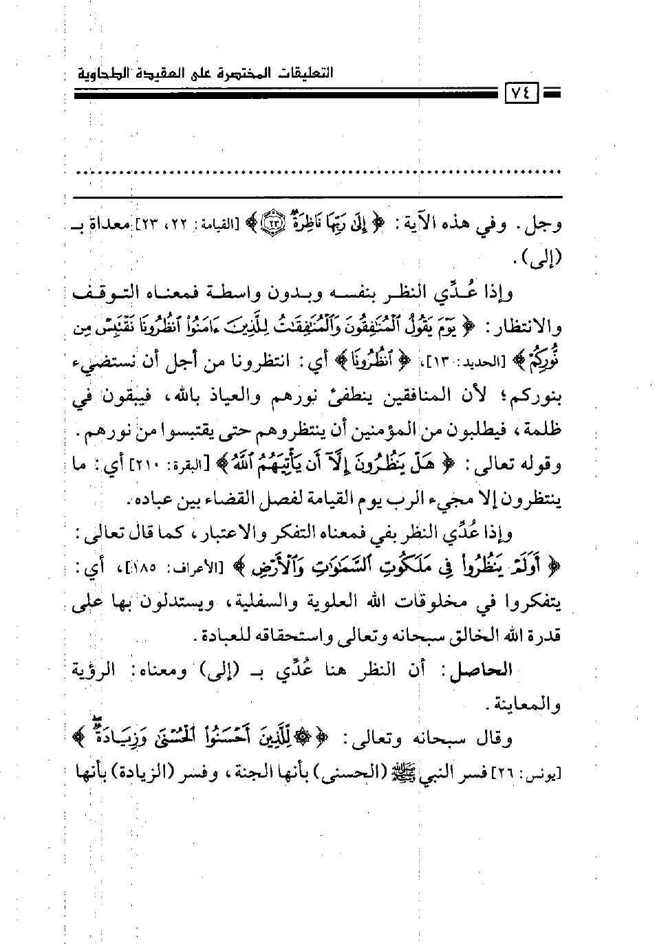 وجل. وفي هذه الآية: (إلى ربها ناظرة) [القيامة: 22، 23] معداة بـ (إلى) .