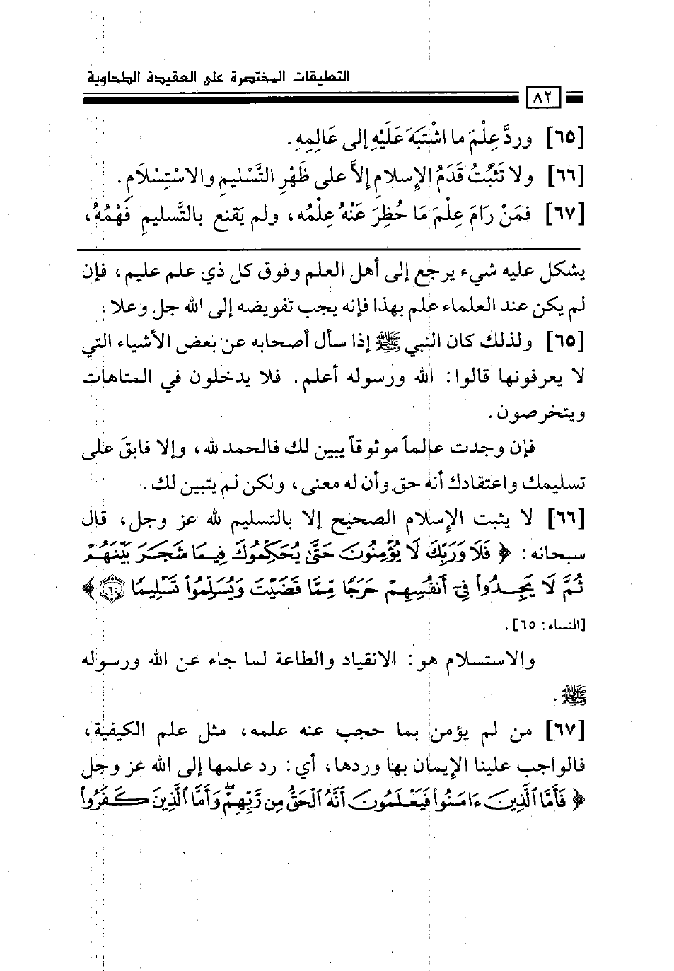 ولا تثبت قدم الإسلام إلا على ظهر التسليم والاستسلام: