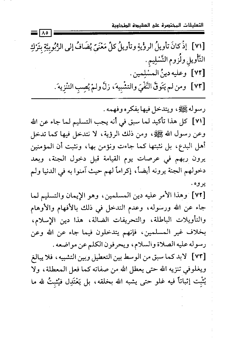 كل هذا تأكيد لما سبق في أنه يجب التسليم لما جاء عن الله وعن رسول الله صلى الله عليه وسلم، ومن ذلك الرؤية، لا نتدخل فيها كما تدخل أهل البدع، بل نثبتها كما جاءت ونؤمن بها، ونثبت أن المؤمنين يرون ربهم في عرصات يوم القيامة قبل دخول الجنة، وبعد دخولهم الجنة يرونه أيضاً، إكراماً لهم حيث آمنوا به في الدنيا ولم يروه.