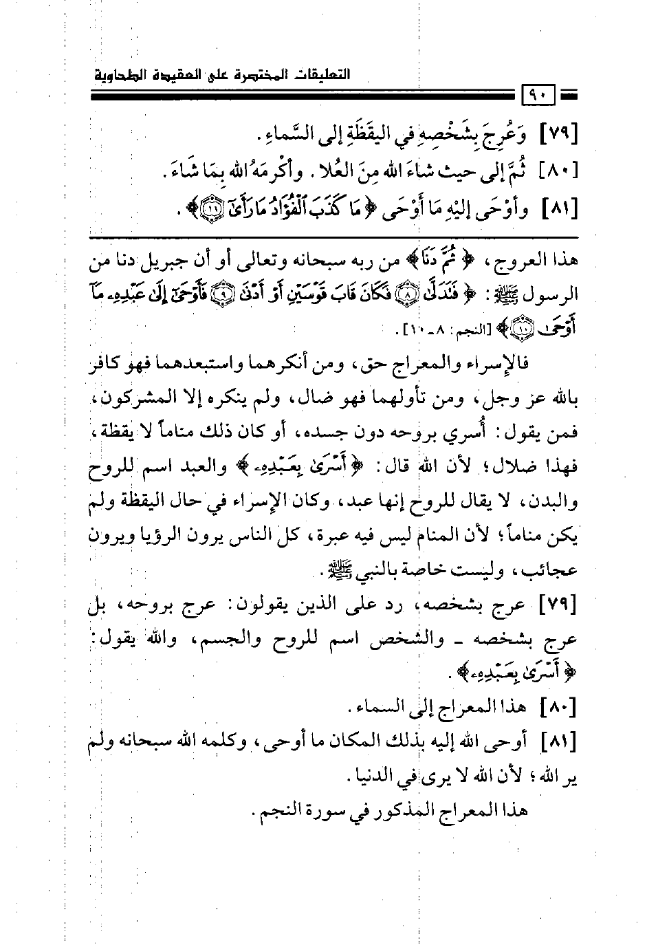 عرج بشخصه، رد على الذين يقولون: عرج بروحه، بل عرج بشخصه -والشخص اسم للروح والجسم، والله يقول: (أسرى بعبده) .
