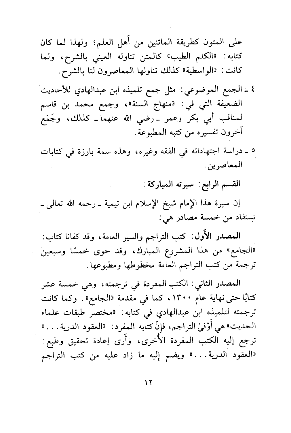 الحديث " هي أوفى التراجم، فان كتابه المفرد: " العقود الدرية. . . "