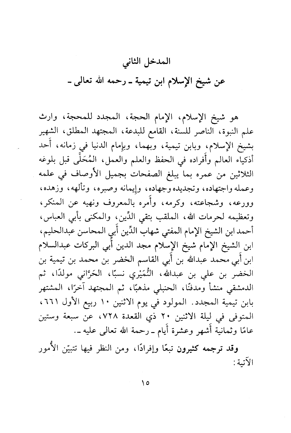 المدخل الثاني عن شيخ الاسلام ابن تيمية - رحمه الله تعالى-