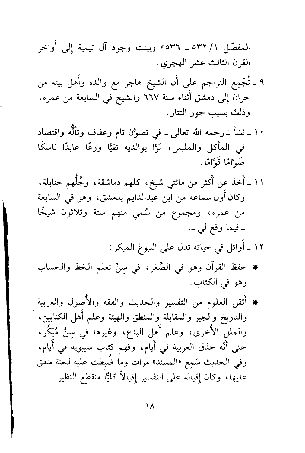 10 - نشأ - رحمه الله تعالى - في تصون تام وعفاف وتاله واقتصاد