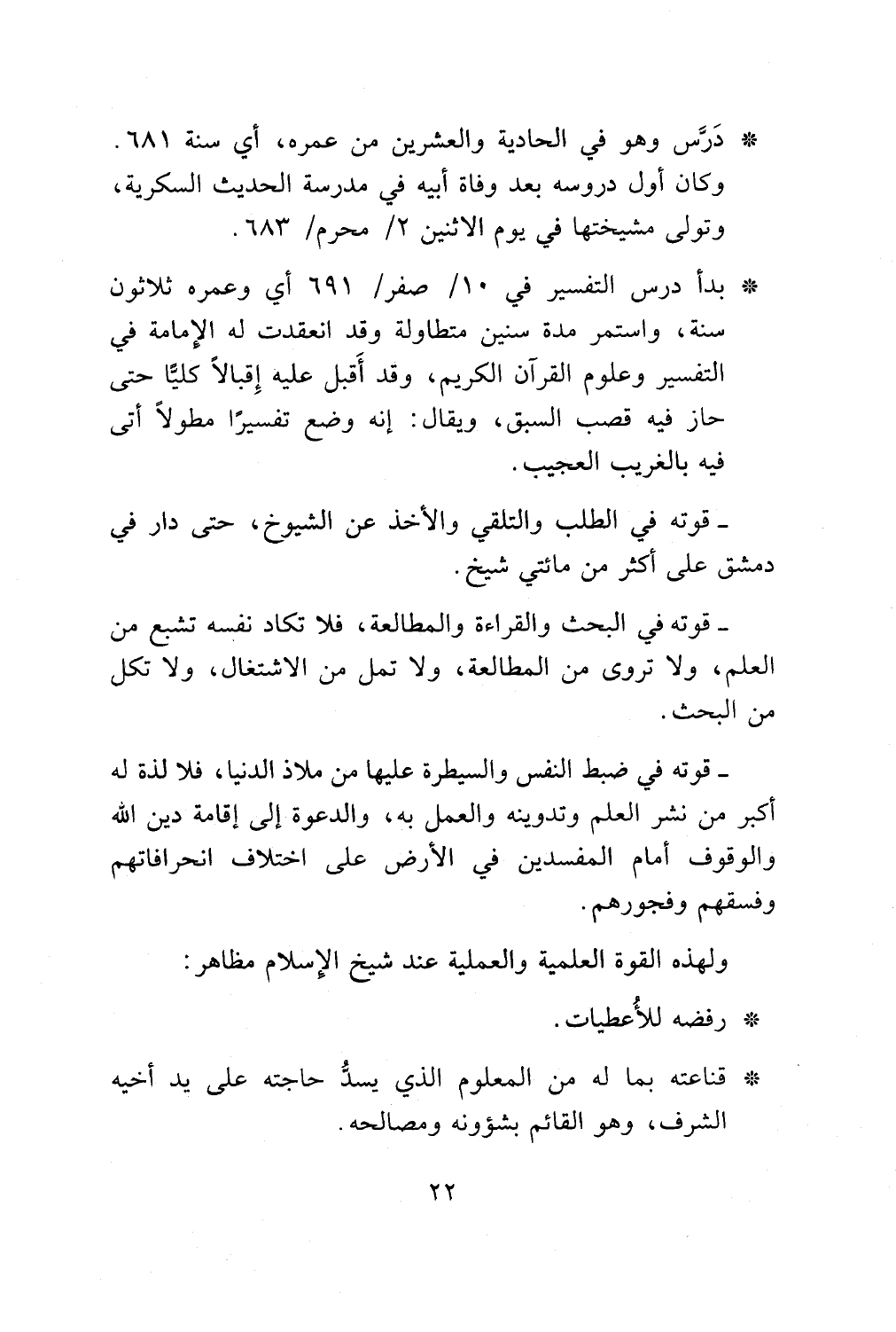 * بدأ درس التفسير في 10/ صفر/ 691 أي وعمره ثلاثون