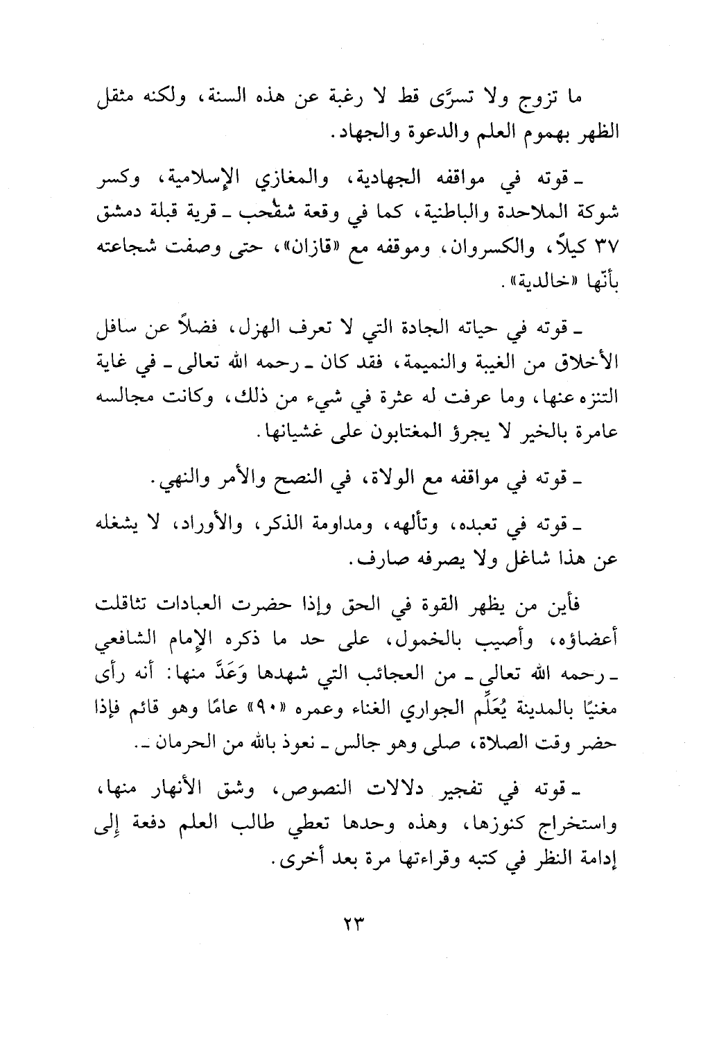 * قوته في مواقفه الجهادية، والمغازي الإسلامية، وكسر