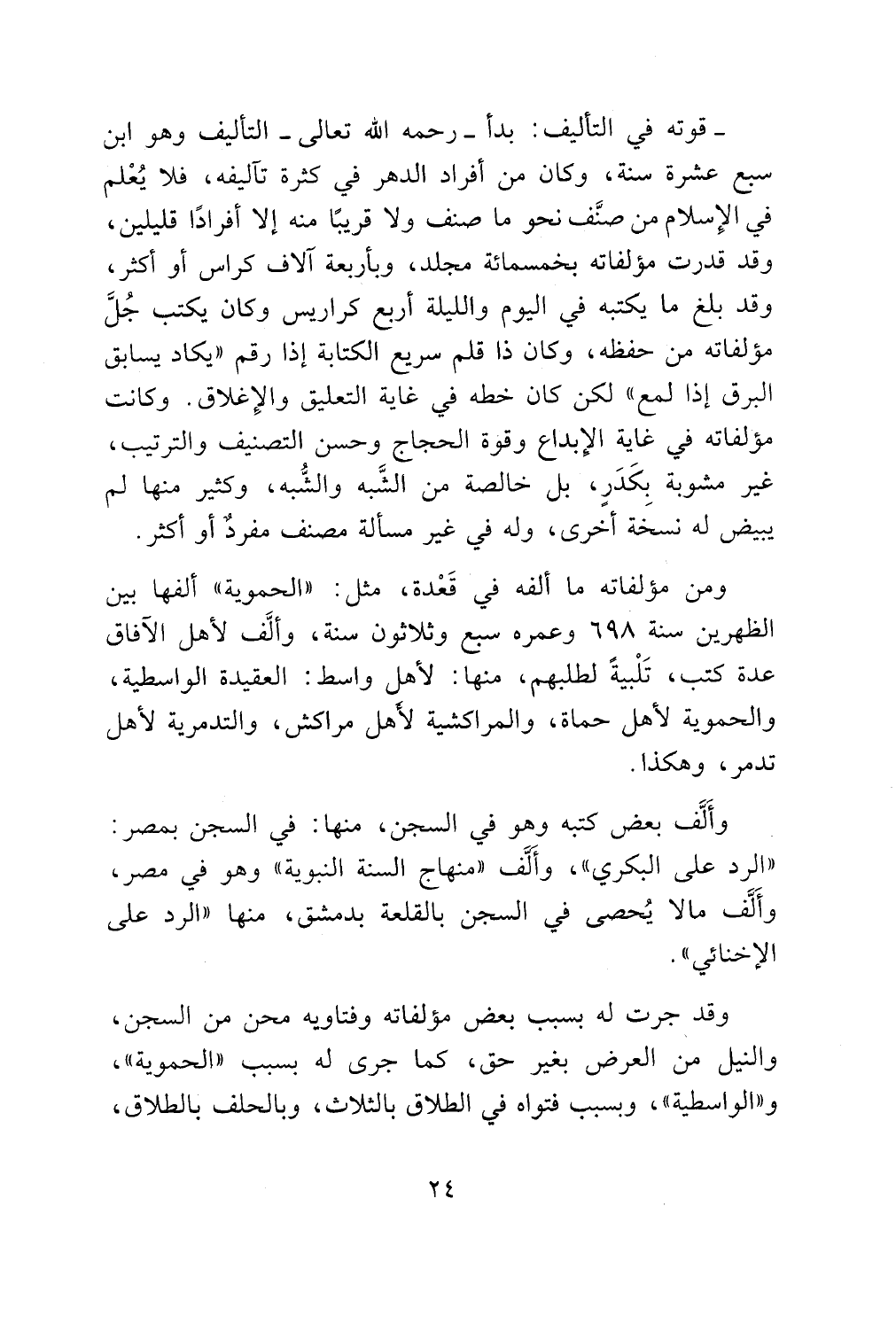ومن مؤلفاته ما لفه في قعدة، مثل: "الحموية" ألفها بين