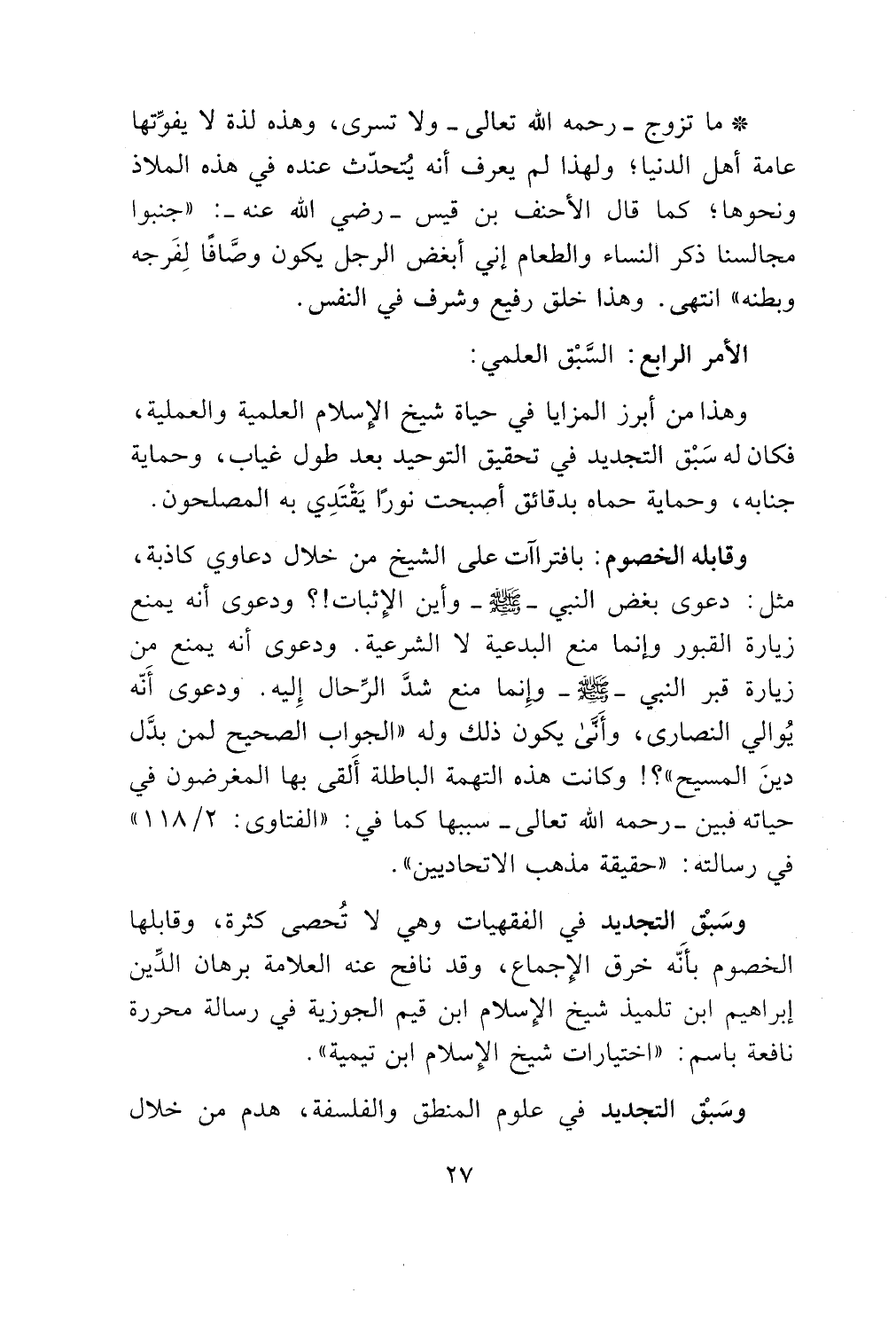 فكان له سبق التجديد في تحقيق التوحيد بعد طول غياب، وحماية
