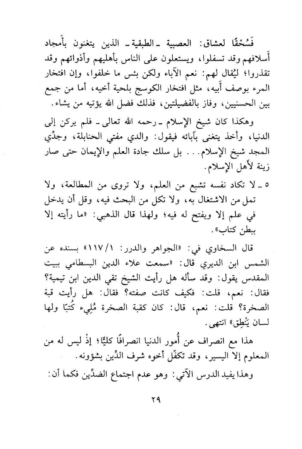 وهكذا كان شيخ الاسلام -رحمه الله تعالى - فلم يركن إلى