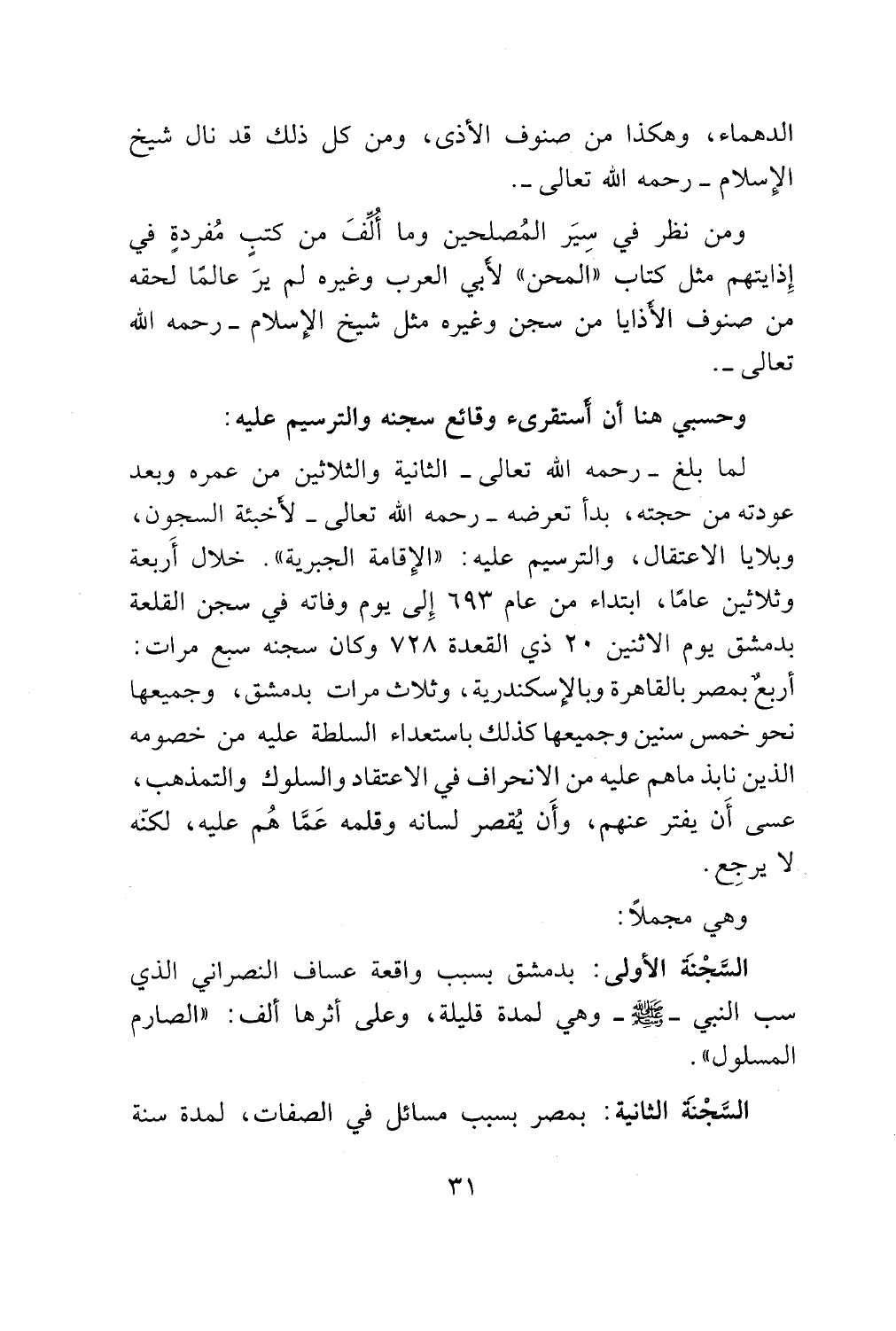 السجنة الثانية: بمصر بسبب مسائل في الصفات، لمدة سنة
