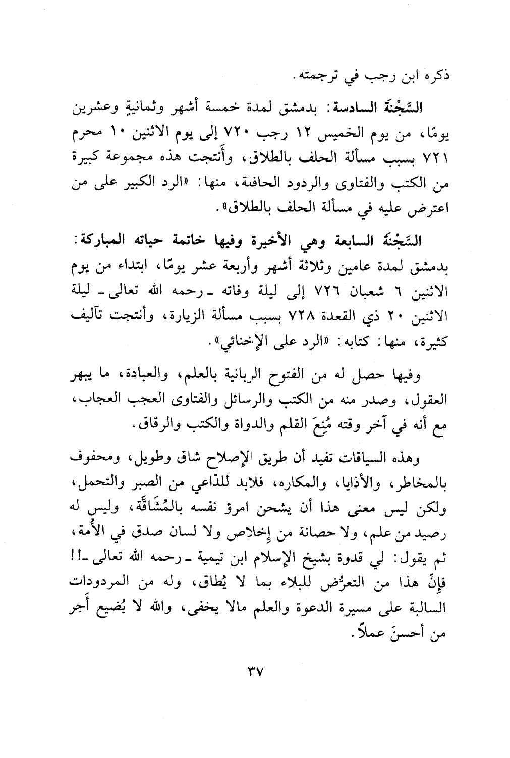 الاثنين 6 شعبان 726 إلى ليلة وفاته -رحمه الله تعالى - ليلة