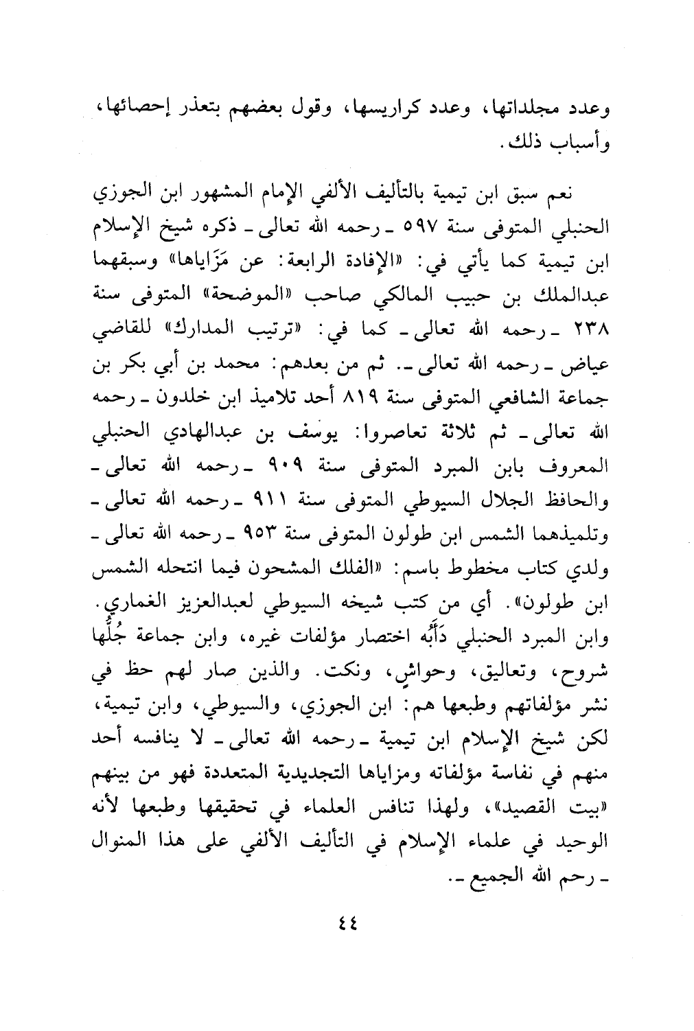 نشر مؤلفاتهم وطبعها هم: ابن الجوزي، والسيوطي، وابن تيمية،