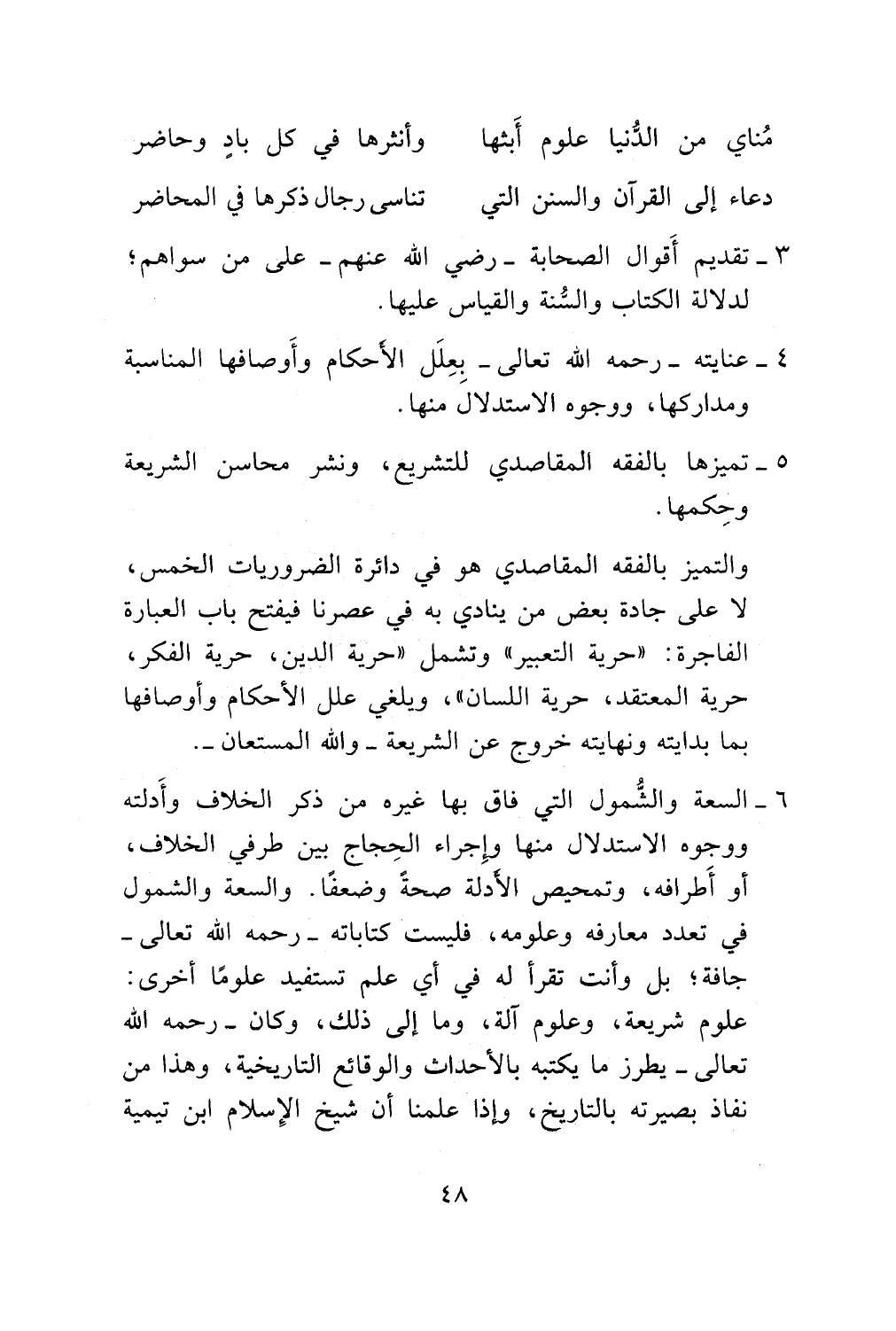 حرية المعتقد، حرية اللسان "، ويلغي علل الاحكام وأوصافها