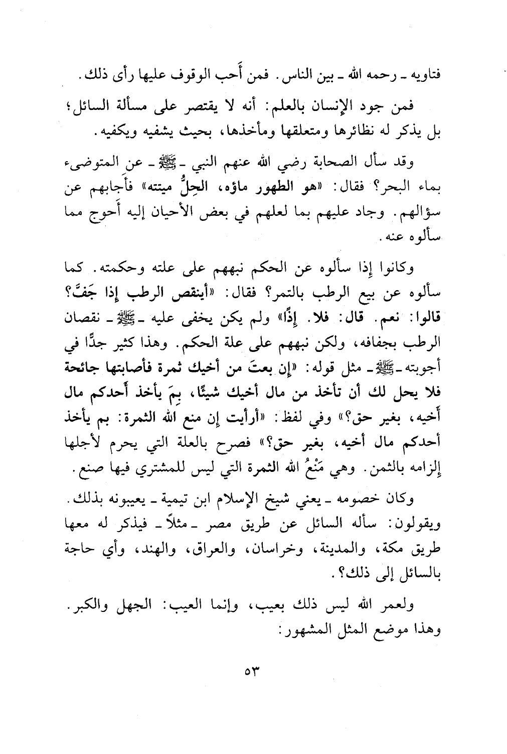 وكانوا إذا سألوه عن الحكم نبههم على علته وحكمته. كما
