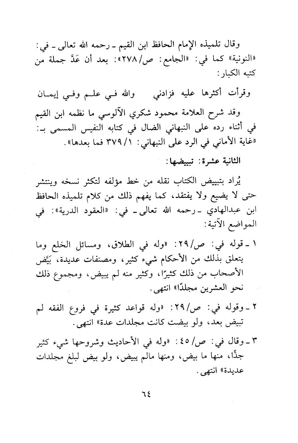 وقد شرح العلامة محمود شكري الالوسي ما نظمه ابن القيم