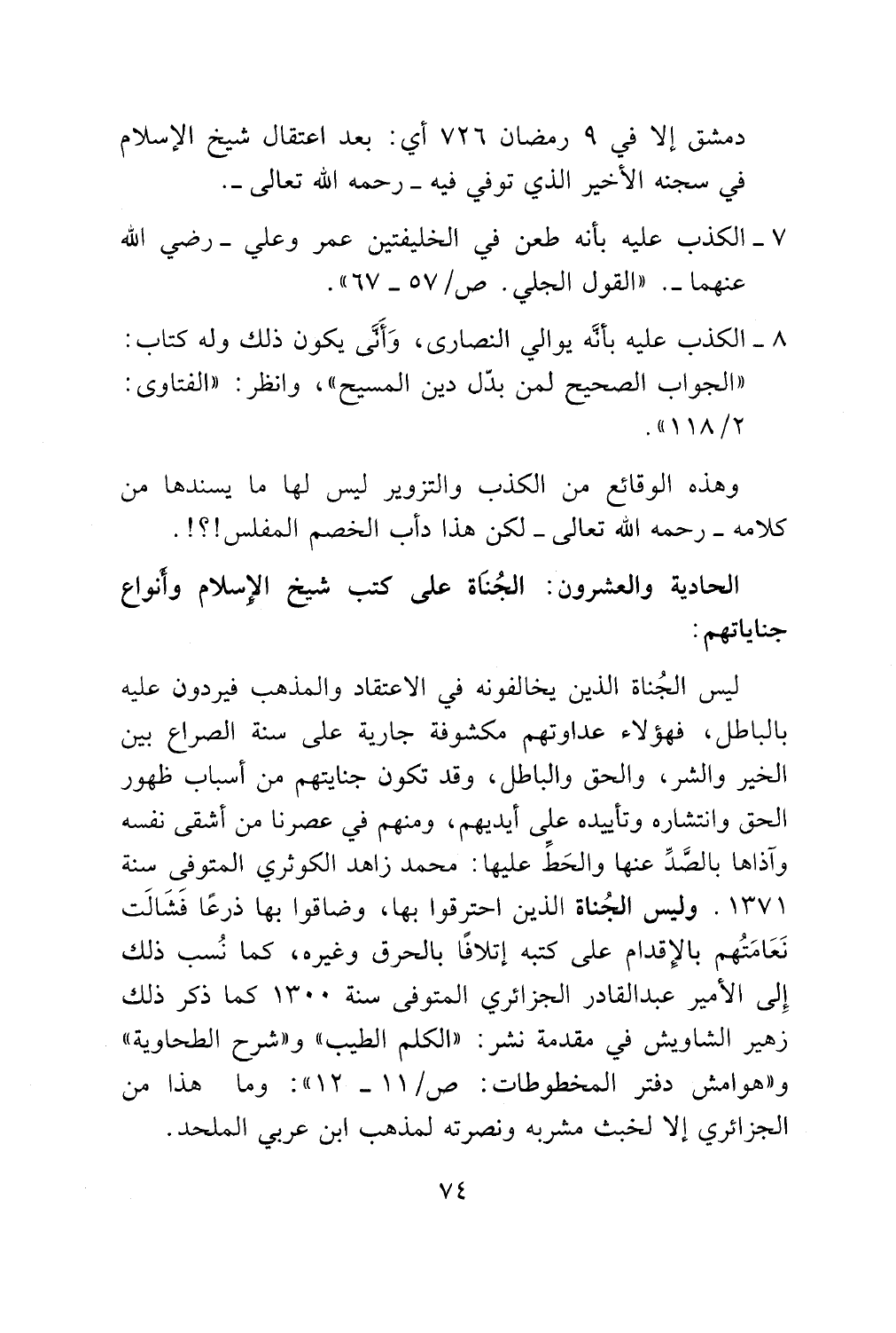 الحادية والعشرون: الجناة على كتب شيخ الاسلام وانواع