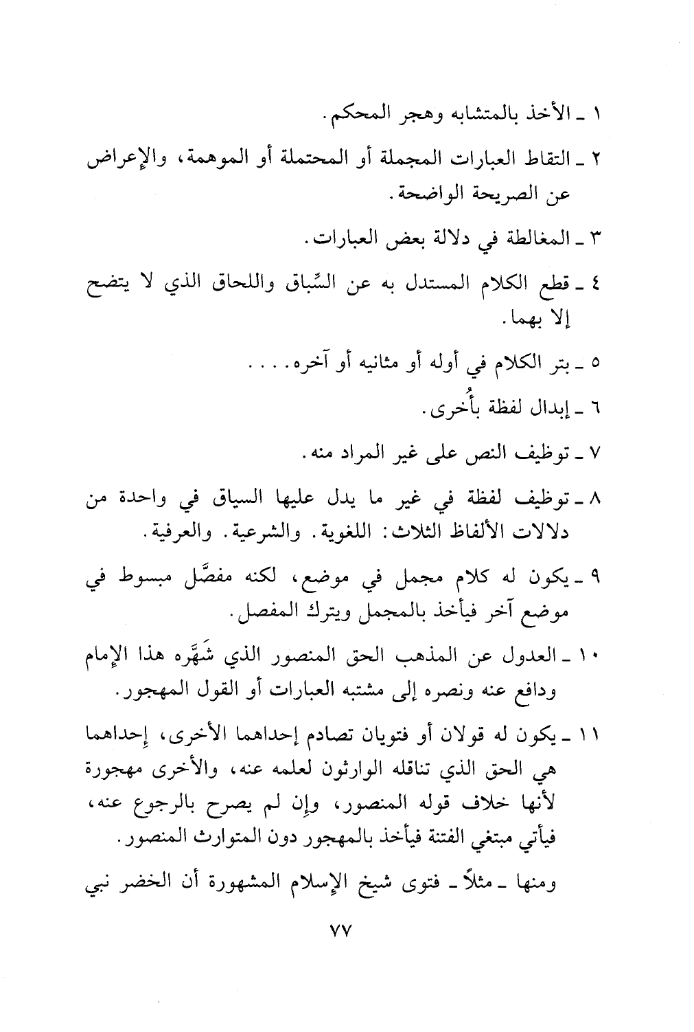 10 - العدول عن المذهب الحق المنصور الذي شفره هذا الامام