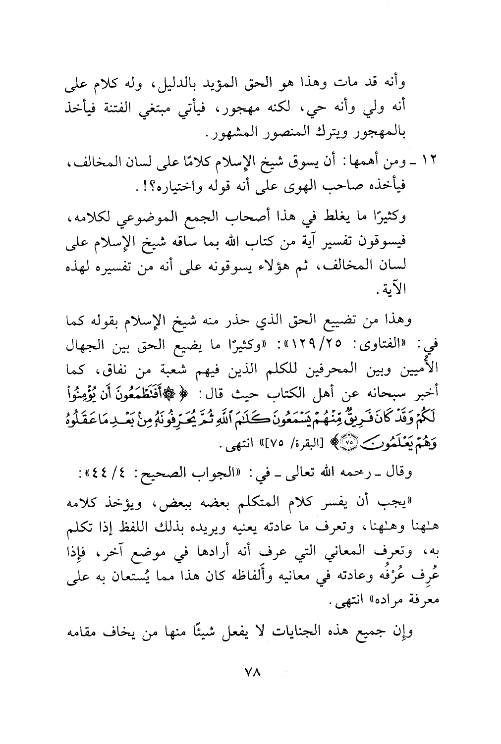 12 - ومن اهمها: ان يسوق شيخ الاسلام كلاما على لسان المخالف،
