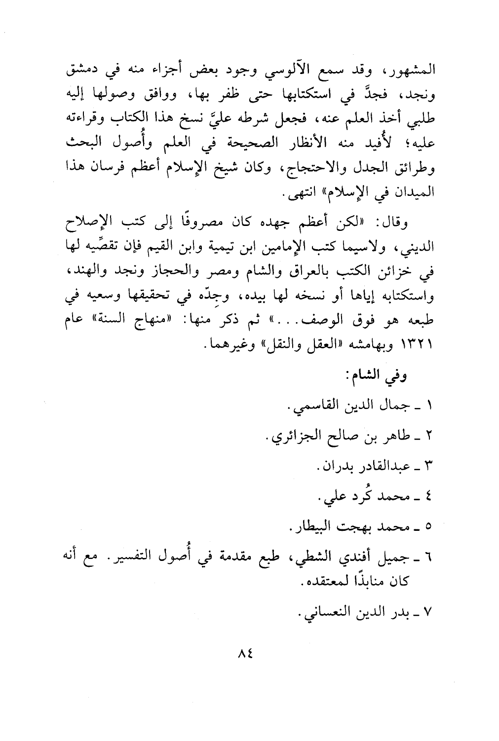 طبعه هو فوق الوصف. . ." ثم ذكر منها: "منهاج السنة " عام