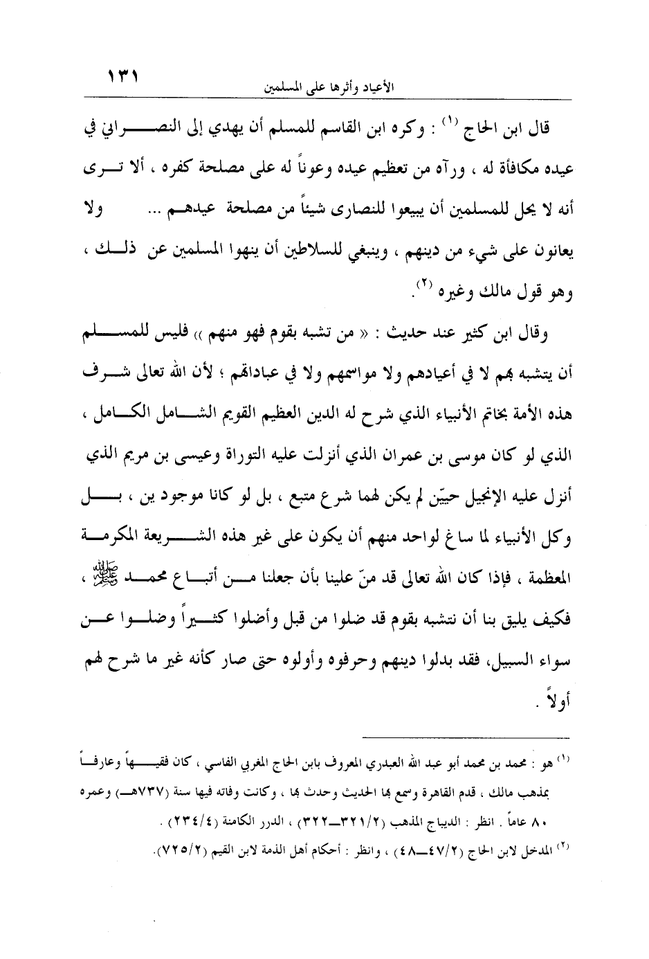 2 المدخل لابن الحاج (2/47ـ48) ، وانظر: أحكام أهل الذمة لابن القيم (2/725) .