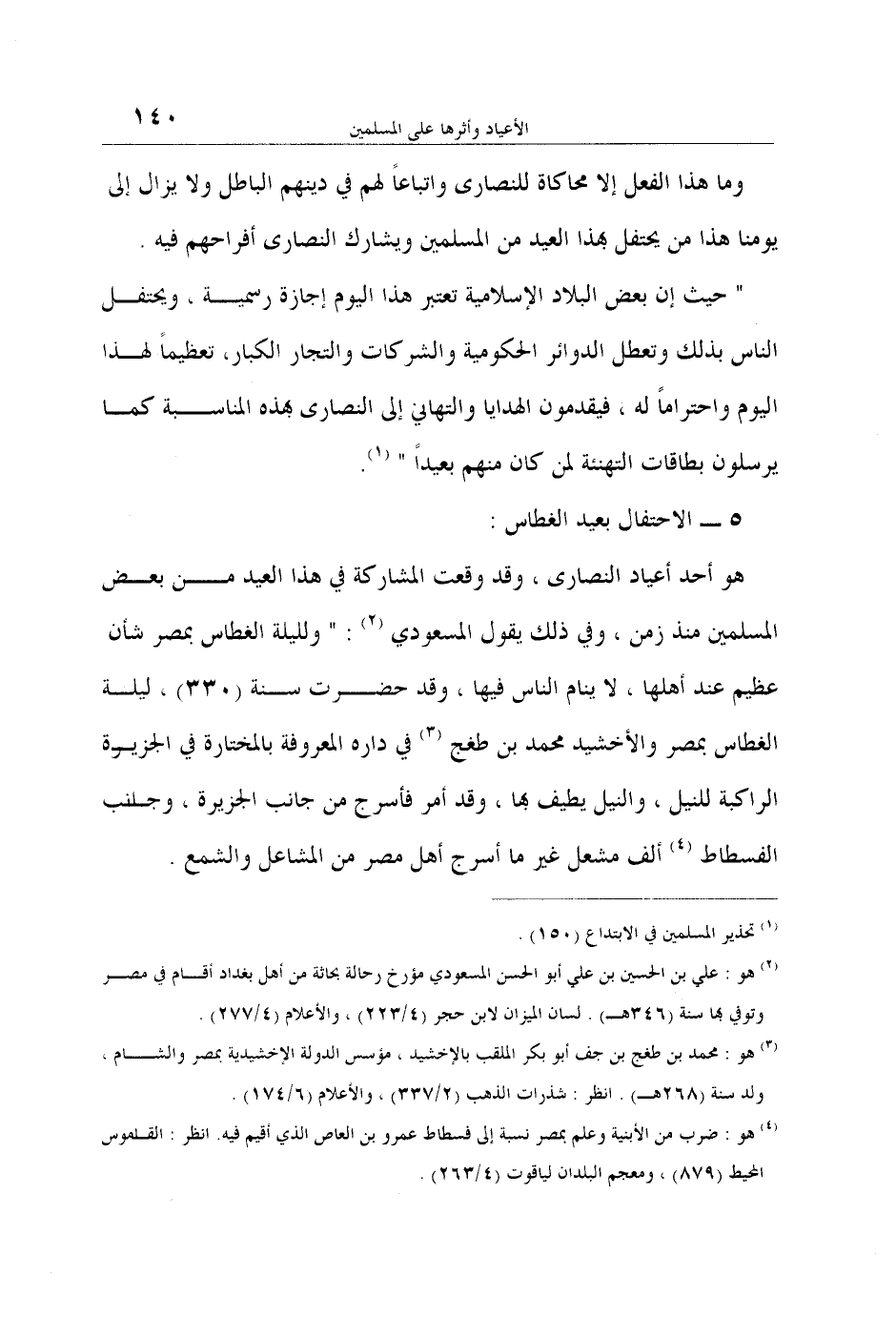 " حيث إن بعض البلاد الإسلامية تعتبر هذا اليوم إجازة رسمية، ويحتفل الناس بذلك وتعطل الدوائر الحكومية والشركات والتجار الكبار، تعظيماً لهذا اليوم واحتراماً له، فيقدمون الهدايا والتهاني إلى النصارى بهذه المناسبة كما يرسلون بطاقات التهنئة لمن كان منهم بعيداً"1.