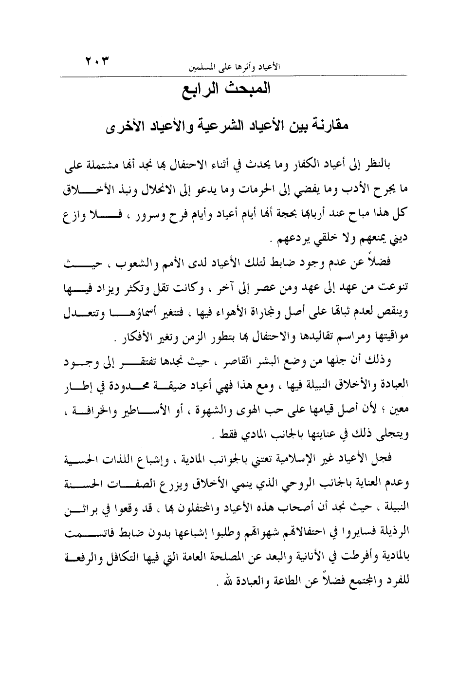 المبحث الرابع: مقارنة بين الأعياد الشرعية والأعياد الأخرى