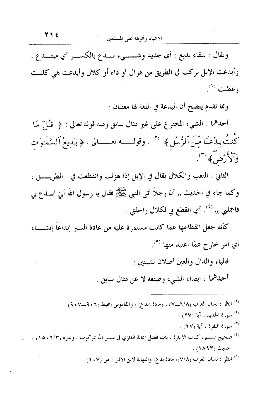 5 انظر: لسان العرب (8/7) ، مادة بدع، والنهاية لابن الأثير، ص (107) .
