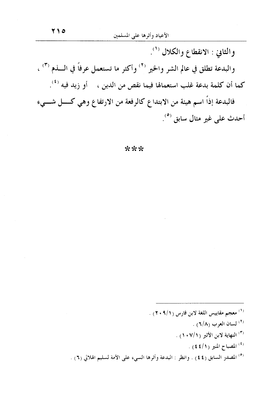 5 المصدر السابق (44) . وانظر: البدعة وأثرها السيء على الأمة لسليم الهلالي (6) .