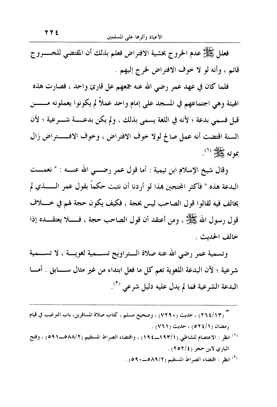 1 انظر: الاعتصام للشاطبي (1/193ـ194) ، واقتضاء الصراط المستقيم (2/588ـ591) ، وفتح الباري لابن حجر (4/252) .
