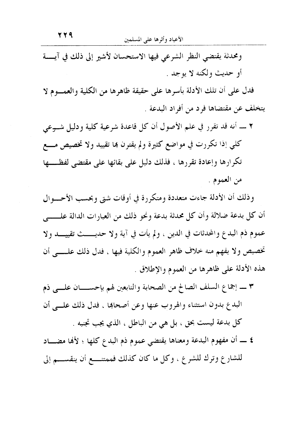 وذلك أن الأدلة جاءت متعددة ومتكررة في أوقات شتى وبحسب الأحوال أن كل بدعة ضلالة وأن كل محدثة بدعة ونحو ذلك من العبارات الدالة على عموم ذم البدع والمحدثات في الدين، ولم يأت في آية ولا حديث تقييد ولا تخصيص ولا يفهم منه خلاف ظاهر العموم والكلية فيها، فدل ذلك على أن هذه الأدلة على ظاهرها من العموم والإطلاق.